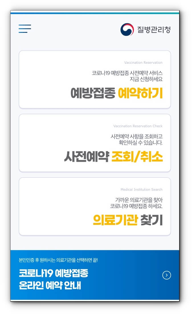 [코로나19 예방접종 사전예약 시스템 홈페이지 캡처.